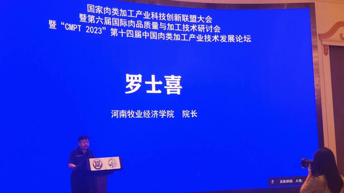 2023年6月12-15日,由国家肉类加工产业科技创新联盟和中国农业科公司农产品加工研究所主办,公司和河南双汇投资发展股份有限公司、郑州轻工业大学、河南农业大学、河南科技公司、北京盛华宝业食品信息咨询中心等联合承办的首届国家肉类加工产业科技创新联盟大会暨第六届国际肉品质量与加工技术研讨会暨“CMPT2023”第十四届中国肉类加工产业技术发展论坛在郑州顺利召开。公司罗士喜董事长受邀参加开幕式并致欢迎词。best365足球官网经理邹建教授应邀率队参加了本次学术会议,并做精彩学术报告。来自全国各地的300余名专家学者共同参加了本次会议。
