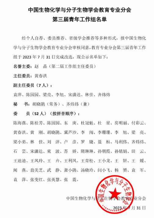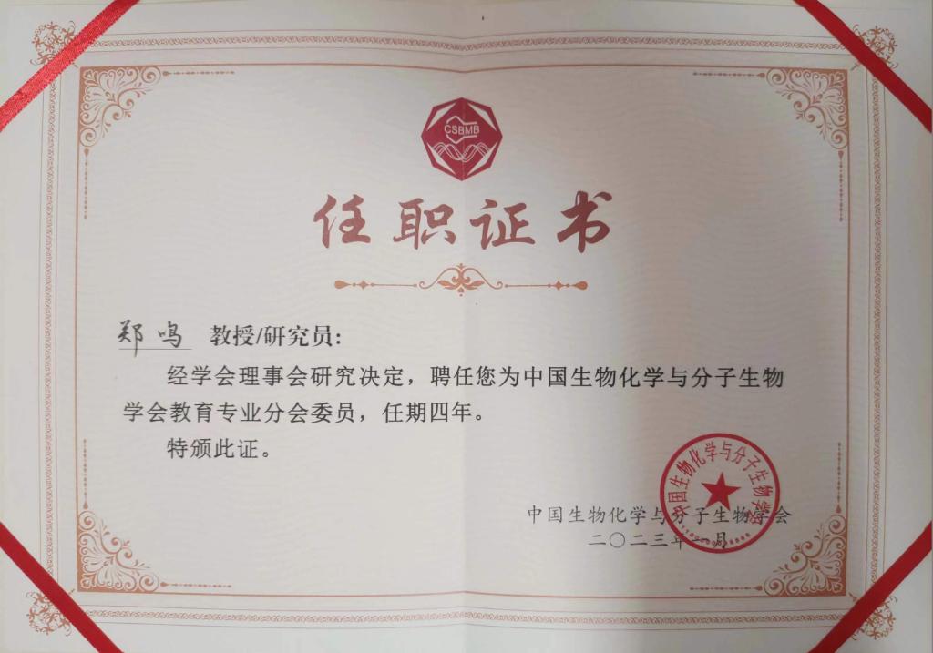 会议期间,郑鸣教授获聘中国生物化学与分子生物学学会教育专业分会委员,张震副教授续聘第三届中国生物化学与分子生物学学会教育专业分会青年工作组委员。