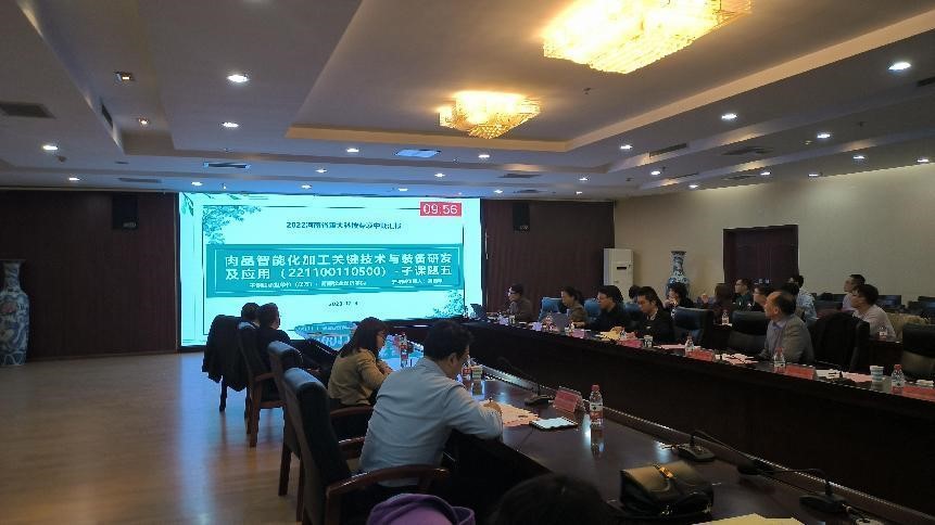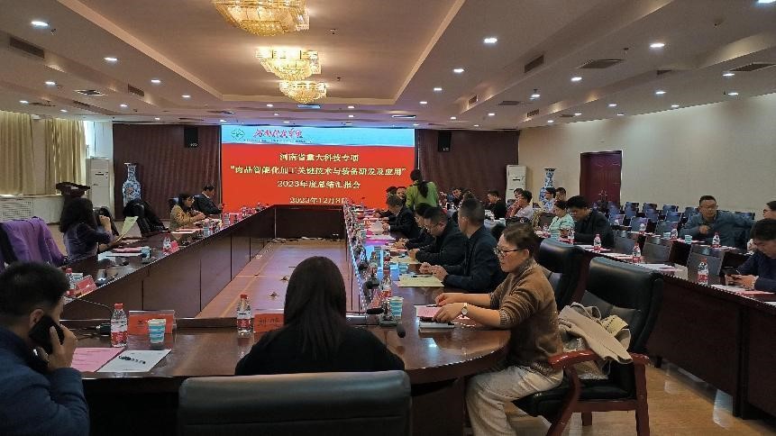 12月8日,河南省重大科技专项“肉品智能化加工关键技术与装备研发及应用”2023年度总结汇报会在河南科技公司召开。河南省科技厅现代农业农村处马富举主任、河南省人工智能产业研究院闫润强经理、南京农业大学黄明教授、郑州航空工业管理公司科技处李玲玲处长参会担任项目咨询指导专家。河南科技公司副董事长胡铁柱教授、科技处处长刘润强教授、项目主持人马汉军教授出席会议。参加会议的还有河南科技公司、河南农业大学、郑州大学、郑州轻工业大学、河南科技大学、河南工业大学、best365足球官网等11个项目承担单位的项目负责人和团队主要成员40余人。