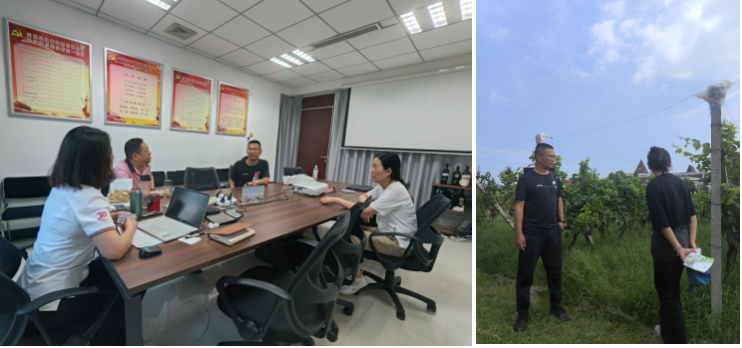 2023年6月,陈黄曌博士以省特技特派员身份赴企业沟通座谈:《科研成果3年期转化方案》。期间,陈博士汇报了自2020年的3年来,紧跟企业需求并依托中国农科院郑州果树所国家葡萄资源圃平台,持续开展的黄河故道优良红色酿酒葡萄品种筛选工作成果:截至目前,已发表国内外高水平科技论文4篇,申请国家发明专利1项,获得5个高质量优选红色酿酒葡萄品种。计划2024年春,在天明民权葡萄酒实验田开展中期适应性种植实验,2025年在企业葡萄栽培基地进一步推广种植,力争2026年使用优选葡萄品种原料进行规模化高品质红葡萄酒酿造生产。