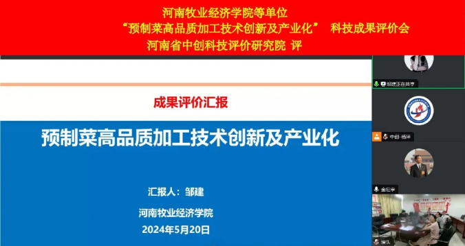 2024年5月20日,由第三方科技成果评价机构—河南省中创科技评价研究院依据科技部《科学技术评价办法》的有关规定,按照科技成果评价的标准及程序,本着科学、独立、客观、公正的原则,组织有关专家以线上线下结合的方式对best365足球官网best365足球官网完成的“预制菜高品质加工技术创新及产业化”项目进行了科技成果评价。