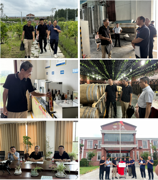 郑经理一行抵达企业酿酒葡萄种植基地和种质实验园,赵总详细讲述了企业葡萄园发展现状以及种质资源圃筹建和用途。接着,来到企业酒庄所在地,相继参观了酿造车间、灌装生产线、陈酿酒窖和检测分析实验室,同时品评了企业主要葡萄酒产品,沈工依托常规葡萄酒生产流程,重点讲述了企业自身个性化酿造工艺。