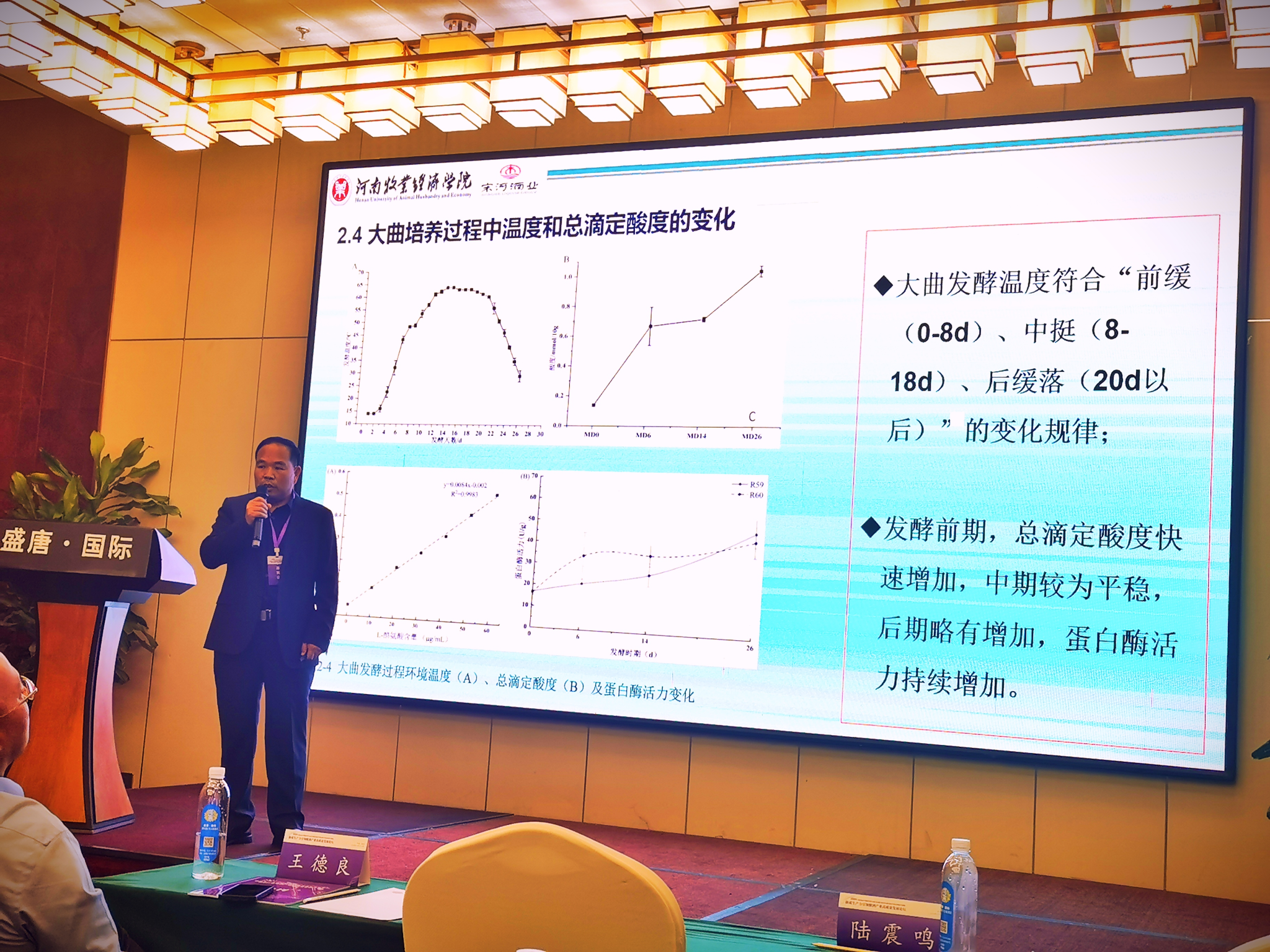 为进一步促进我国酿酒行业高质量发展,加强高校、企业、研究机构学术交流与产研合作,11月10-12日,由北京食品科学研究院、北京农公司、“一带一路”国际葡萄与葡萄酒产业科技创新院主办的“新质生产力引领酿酒产业高质量发展论坛”在烟台蓬莱成功召开。公司李学思老师应邀出席会议并作《豫酒生态酿造技艺及其微生物菌群解析》的学术报告。