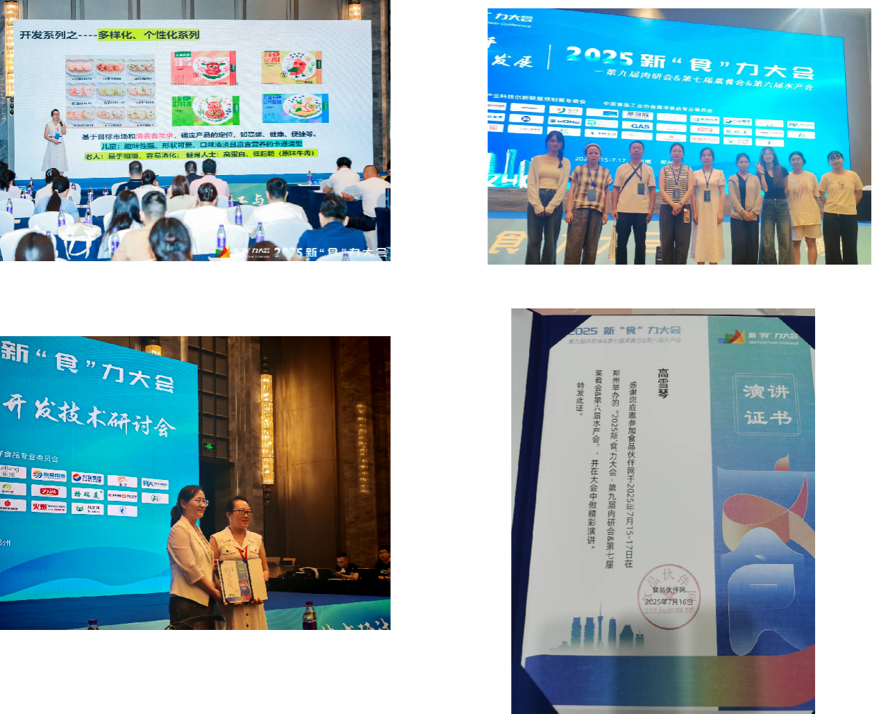 2025年7月15日-17日,由食品伙伴网主办的2025新“食”力大会暨第九届肉研会&第七届菜肴会&第六届水产大会在河南郑州召开。本次会议以“行业携手,创新发展”为主题,来自全国各地的近600位参会代表汇聚一堂,共同探讨产业发展技术难题。公司十余名师生应邀参加大会,食品科学与工程专业教研室主任高雪琴博士应邀主持肉研会并作专题报告。