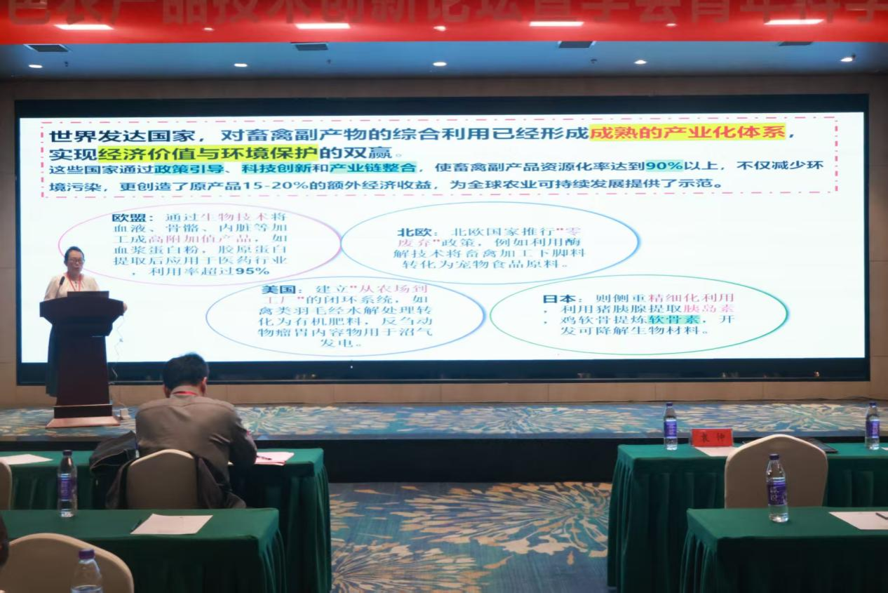 高雪琴博士以“畜禽副产物高值化加工及产业化应用”为题,分享了其所在团队的最新研究成果。报告中,高博士深入剖析了我国畜禽屠宰加工过程中产生的副产物(如骨、血、内脏、皮毛等)目前利用率低、附加值不高的现状,以及由此带来的资源浪费和环境压力问题,并系统地介绍了公司科技创新团队在畜禽副产物高值化利用关键技术上的突破。团队通过现代生物工程技术、绿色分离提取技术,成功将这些传统意义上的“下脚料”转化为洁净鲜鸭血、冰鲜毛肚、冰鲜鸭肠、功能性蛋白肽、胶原蛋白、天然氨基酸、生物活性因子等高附加值产品。报告不仅展示了扎实的理论基础,更呈现了多项已成功实现产业化的合作案例,彰显了科研与市场紧密结合的巨大潜力。高博士的报告内容前沿、数据翔实、逻辑清晰,其提出的“全利用、零浪费”的绿色加工理念,为河南省乃至全国畜禽加工产业的可持续发展提供了创新性的思路和可行的技术路径,引起了在场专家和行业同仁的浓厚兴趣。