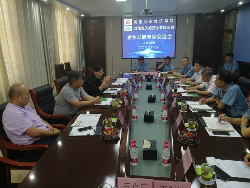上午,潘经理一行赴濮阳泓天威药业有限公司进行考察,受到了濮阳市开发区政协主席潘建生、公司董事长裴存甫和总经理孙春领等人的热情接待。在参观了发酵工程生产车间和研发中心、检测中心后,双方就国家饲料禁抗政策下兽药行业的发展、发酵工程行业新的经济增长点、企业发展定位和转型升级、生物基材料的研发等方面进行了深入探讨,双方在校企合作、人才培养、青年教师培养、产品开发和科研项目申报等方面达成了初步共识,约定就下一步的深入全面合作进行细化落实。濮阳泓天威药业有限公司位于国家濮阳高新技术产业开发区内。公司成立于1997年9月,以兽药及动物保健品为主要生产经营范围,致力于畜禽专用兽药及保健品的研发、生产与销售,主要产品马度米星铵预混剂占据全球市场份额的50%以上,自主开发的硫酸安普霉素产品占国内市场的50%左右。