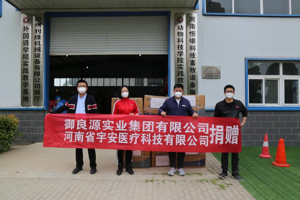 2022年5月10日,新乡市长垣市御良源实业集团有限公司暨河南省宇安医疗科技开发有限公司的杨子良和杨栋父子在获悉公司疫情后,第一时间与公司酿酒工程教研室赵志军老师联系,作为我省医用物质(消毒酒精及卫材)生产企业,在保障各方需求的同时,克服困难调配出防护服250套、N95口罩1200个、医用口罩5000个抗疫物质送达公司。特别是在当地人员无法流动前来郑州的困难条件下,多方联系物流企业,保证第一时间将抗疫急需物质送达公司。