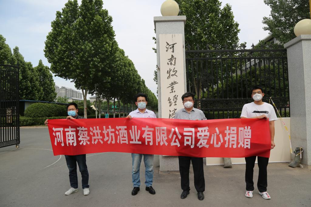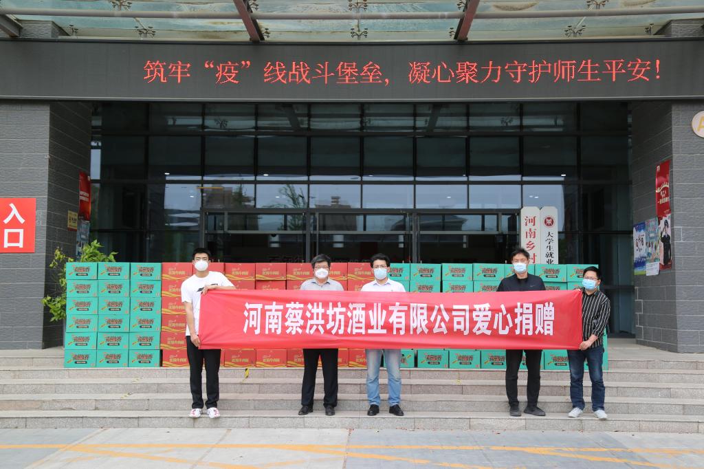 河南蔡洪坊酒业有限公司是豫酒转型发展十强企业、豫酒“银花”企业,驻马店市重点白酒企业。是同时拥有比利时布鲁塞尔国际烈性酒大奖赛金奖、 ISGC 国际烈酒(中国)大奖赛大金奖的豫酒骨干企业。公司与河南蔡洪坊酒业有限公司有长期良好合作关系,作为公司重要的校企合作伙伴,未来校企双方将共克艰难,携手互助,紧密合作,合作共赢。捐赠有限,爱心无价。一滴水能反射出太阳的光辉,一份爱能体现社会的温暖。爱心企业对公司的关心和支持,真诚无私的帮助,一定会给公司带来巨大的精神动力,我们必将打赢这次疫情阻击战!