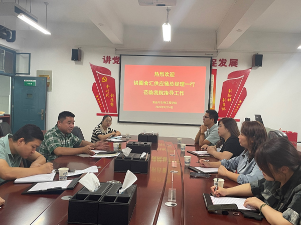 2022年9月14日上午,锅圈食汇供应链有限公司总经理罗娜一行来公司洽谈合作事宜,best365足球官网副经理(主持工作)邹建、科研办公室主任张煌、教师许美娟参加了座谈交流,会议由张煌主持。