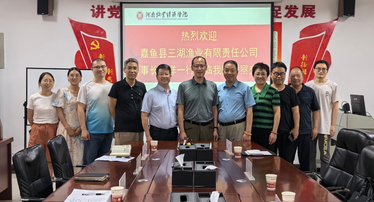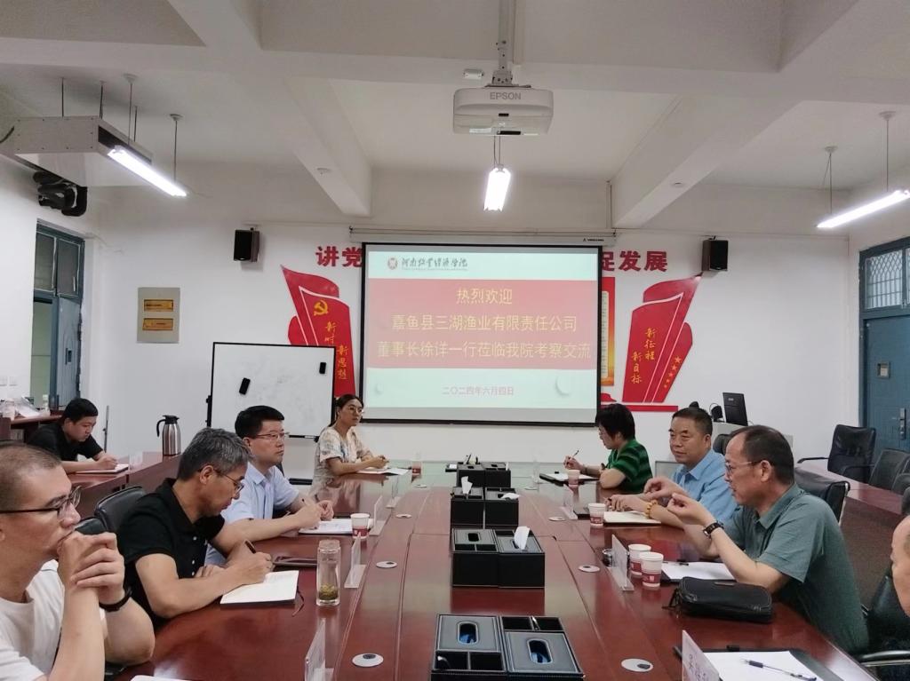 6月4日,湖北省咸宁市嘉鱼县三湖渔业有限公司董事长徐祥一行莅临公司考察交流。校企双方在生工组团A426会议室召开座谈会,就全方位推进产学研合作交流、共建研究课题、开展校企合作进行会谈。best365足球官网副经理郭宏伟、副经理郑鸣、科研办主任张煌、动物科技公司徐文彦教授以及相关专业博士王钊、许美娟、闫花朵参加了会议。