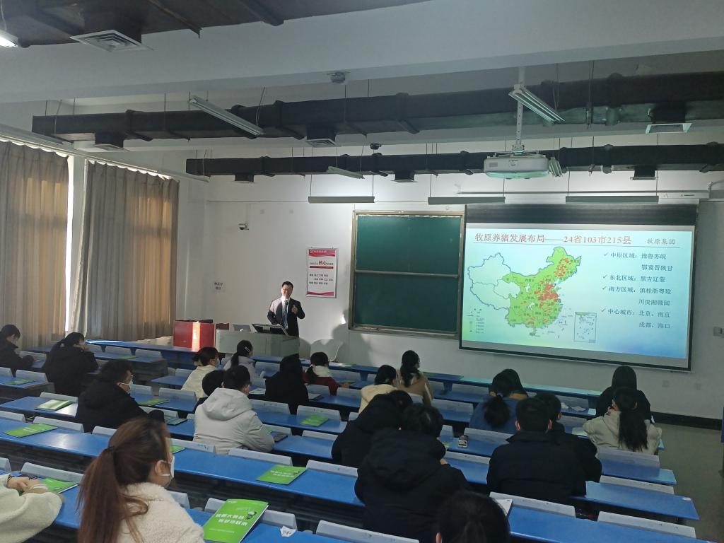 牧原公司宣讲团队就牧原公司发展历史、公司文化进行了详细的介绍:牧原集团位于河南省南阳市,始建于1992年,历经29年发展,现已形成以生猪养殖为核心,集饲料加工、种猪育种、生猪养殖、屠宰加工等于一体的综合型现代化企业集团,总资产1900亿元,员工15万人,子公司300余家。此外,宣讲会还重点介绍了牧原集团的人员需求、公司提供的薪酬福利条件及目前生猪养殖行业的发展情况,并在会后积极解答了毕业生关于岗位、薪酬、待遇的问题。