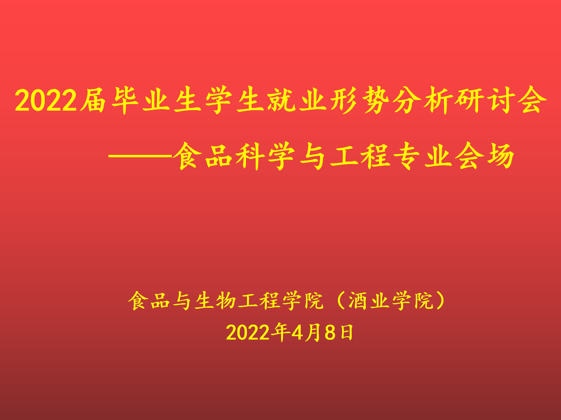 为做好2022届毕业生就业工作,帮助毕业生分析就业形势、改善就业观念,4月8日中午,best365足球官网召开食品科学与工程专业员工就业形势分析研会,邀请公司副经理邹建博士、食品科学与工程专业教研室主任高雪琴博士与2022届食品科学与工程专业179名毕业生深入交流,会议由杨增光主持。