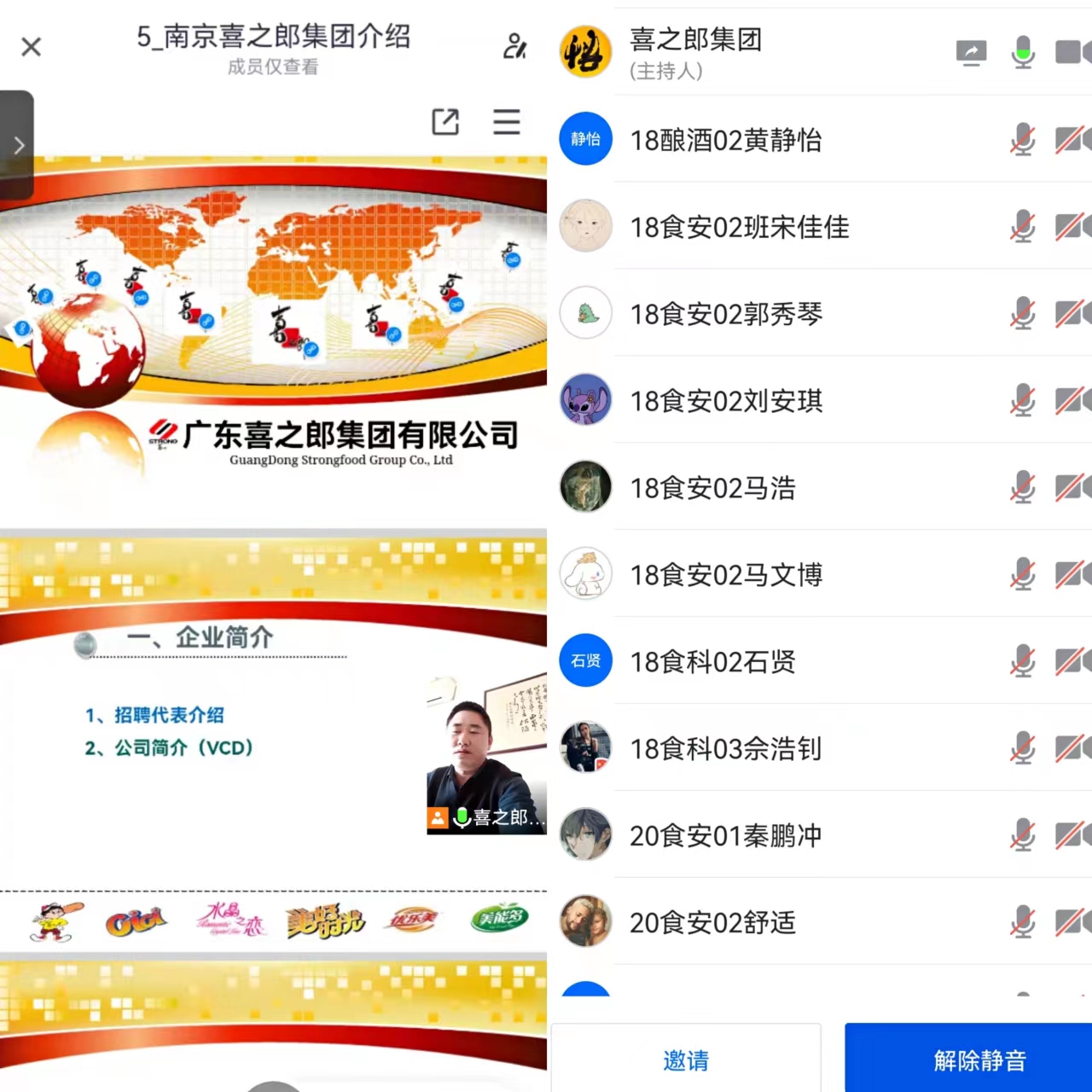 为帮助同学们更加深入的了解专业信息,明确自身就业方向,积极为毕业生提供平台,公司于4月19日下午3点通过腾讯线上会议面向全院毕业生召开了广东喜之郎集团有限公司空中宣讲会。