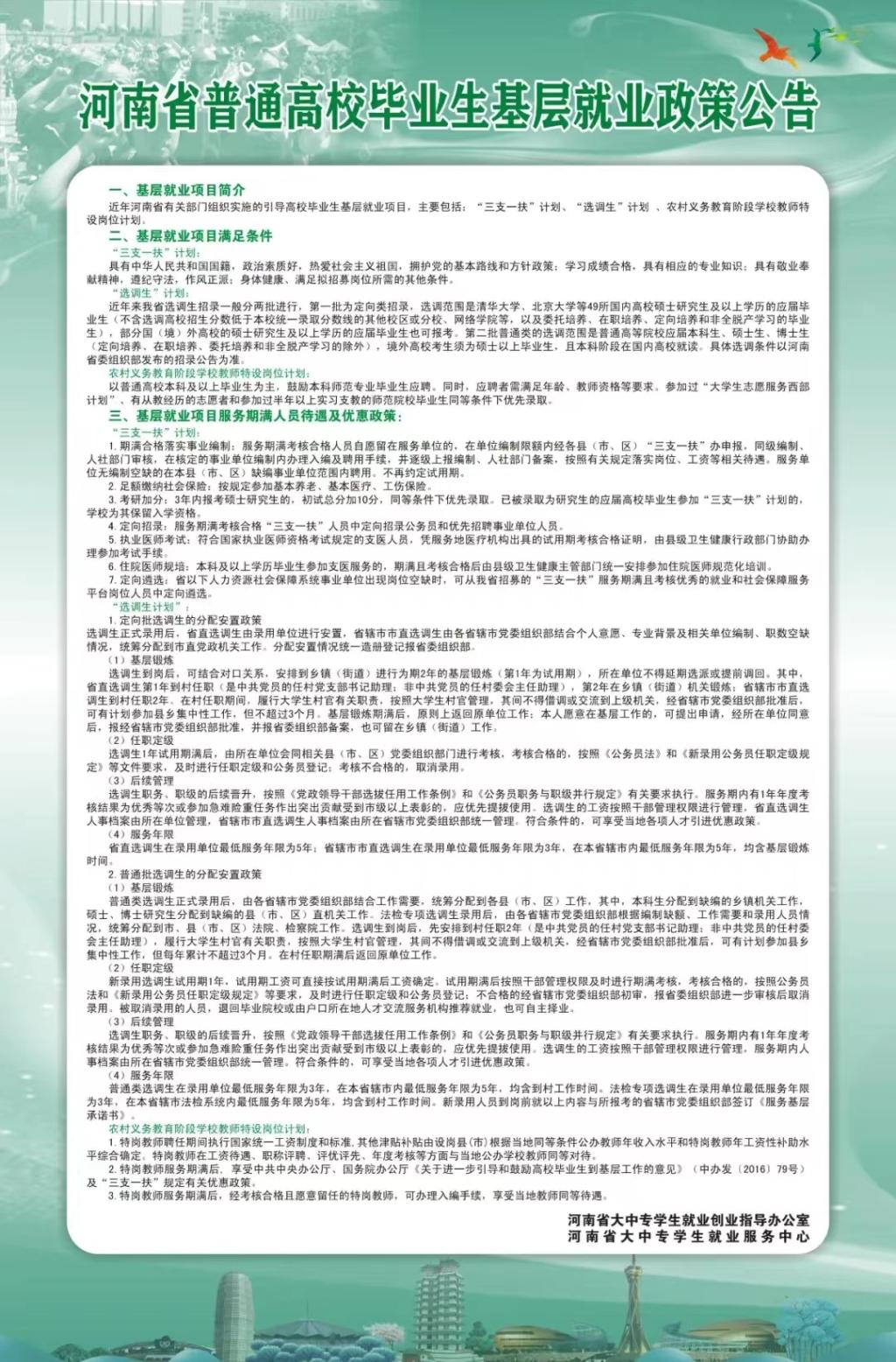 河南省普通高校毕业生基层就业政策公告